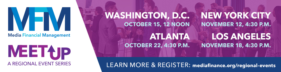 Dates, locations, topics and presenters for MFM’s Fall Regional Meetings have been confirmed, so mark your calendars and plan to attend the one near you. Registration for all Regional Meetings is free and each even combines an educational program (worth one hour of CPE credit) and a networking event where you can connect with other financial professionals from all sectors of the media and entertainment industry. Make sure to secure your spot at one of these four outstanding events by registering below.